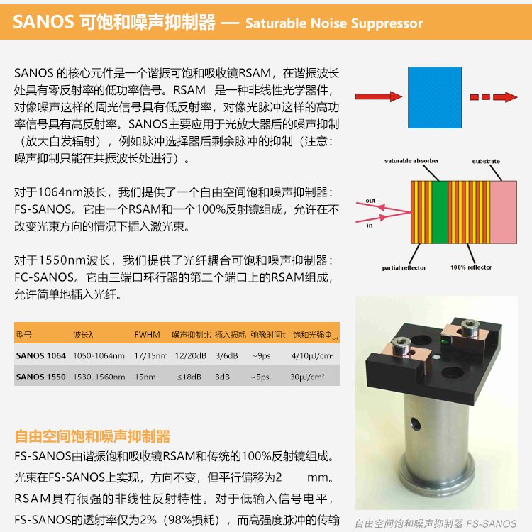 SAM可飽和吸收體因?yàn)椴捎冒雽?dǎo)體材料和工藝,因此也叫半導(dǎo)體可飽和吸收鏡,適用的激光波長范圍達(dá)800nm到3.0μm,弛豫時(shí)間從500fs至25ps ,具有多種封裝方式。其鏡片的尺寸從1×1mm至4×4mm,厚度一般為400~450μm??娠柡衔甄R有多種封裝方式,例如裸片,鍍膜銅基底封裝,和光纖尾端,水冷式封裝等方式。我們一站式供應(yīng)各種類型的BATOP 可飽和吸收鏡,噪聲抑制器,半導(dǎo)體可飽和吸收鏡,,可提供選型、技術(shù)指導(dǎo)、安裝培訓(xùn)、個(gè)性定制等全生命周期、全流程服務(wù),歡迎聯(lián)系我們的產(chǎn)品經(jīng)理!