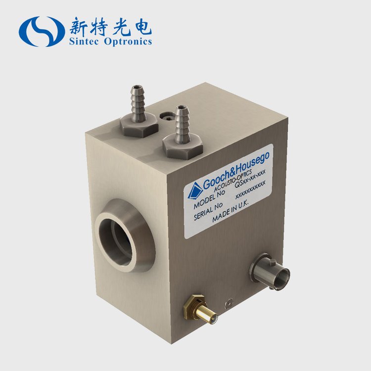 例如:I-QS027-4D10G-B5(Q開關(guān),27.12MHz,4mm有效孔徑,雙(正交傳感器),石英晶體,1064nm,帶B型水接頭)